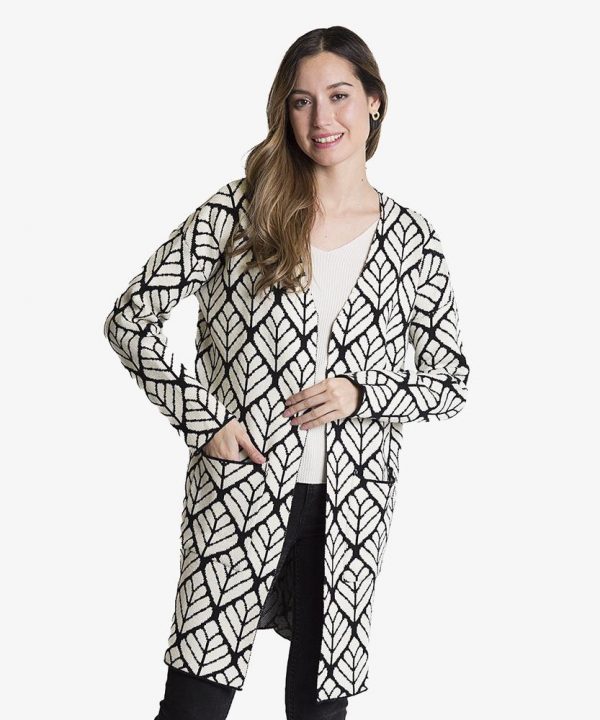 CHAQUETA PUNTO NEGRA HOJAS BLANCAS T.U
