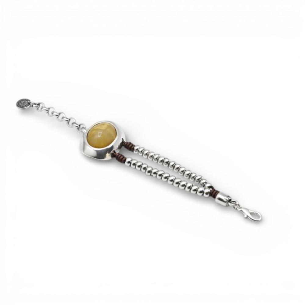 PULSERA PIEDRA RESINA MARRON/CUERO