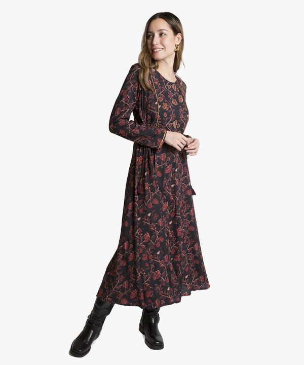 VESTIDO NEGRO CON FLORES ROJAS T.L/XL